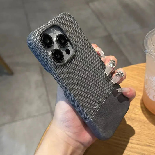 Luxury PU Leather Sew On Nylon Fabric Case For iPhone – Mobizzio