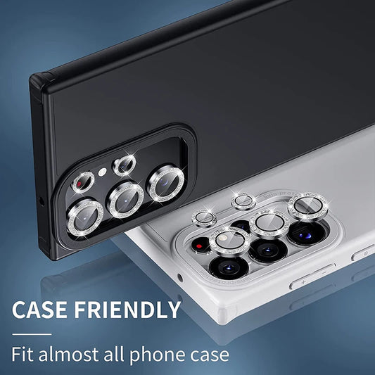 Diamond Glitter Lens Glass For Samsung Galaxy S25 Ultra Plus HD Clear Camera Protector For Samsung S24 S23 Metal Ring Lens Film